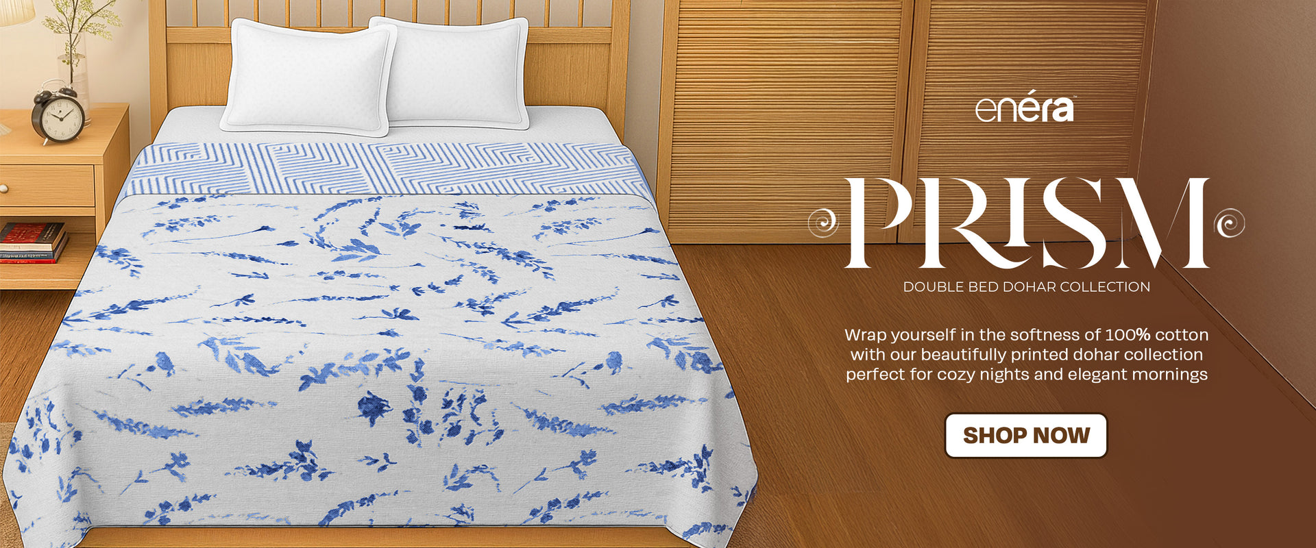 A beautiful bedroom starts with the right fabric and feel. At Enera, our bedding collection is crafted for comfort and style. From soft cotton bedsheets, cozy dohars, warm blankets and comforters to elegant duvet covers, bedcovers, and pillow covers – everything is just a click away!