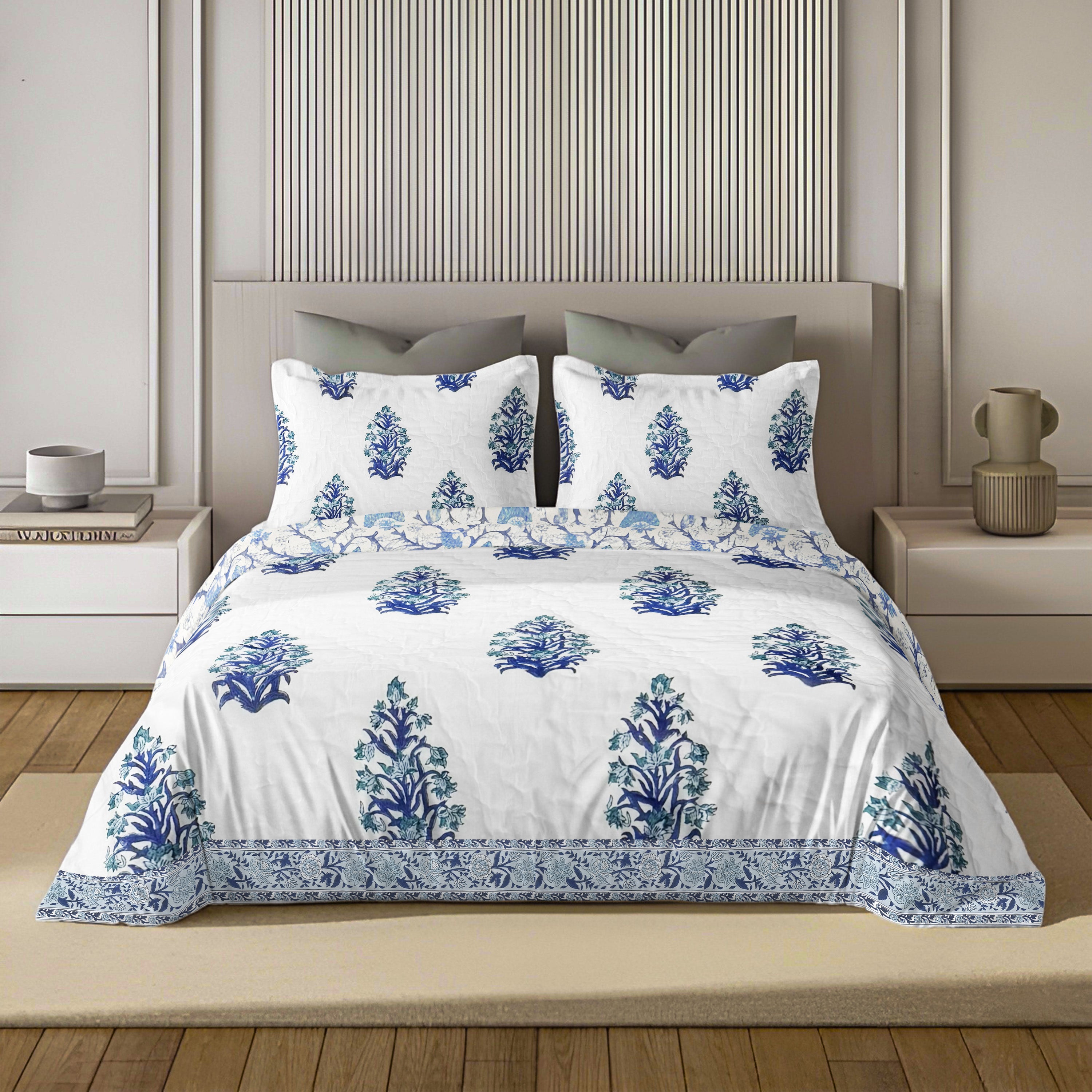 Ocean Jaipuri Nishat Quilt Blue | 100% Cotton | Double Bed Comforter