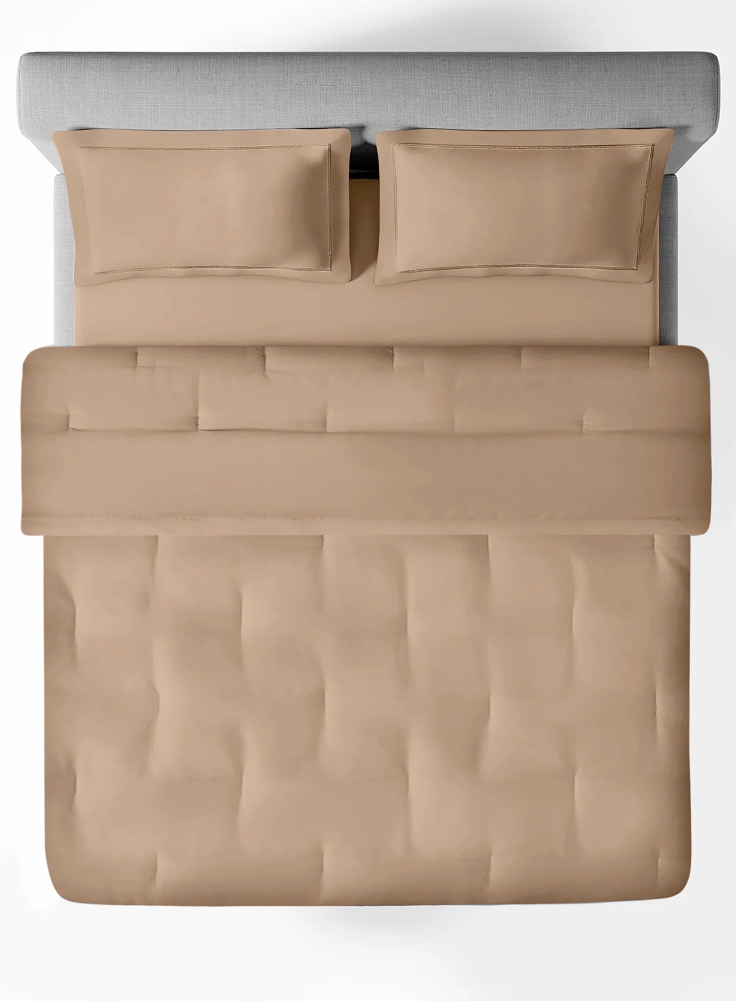Rooted in simplicity, this bedding set is crafted from pure organic cotton for a soft, breathable feel. Its sleek design and natural finish offer a quiet, modern elegance that fits effortlessly into any bedroom. The set includes a comforter, king sized bedsheet and two matching pillows.