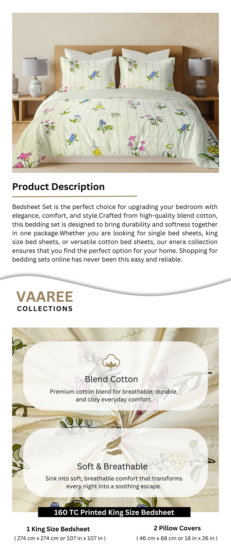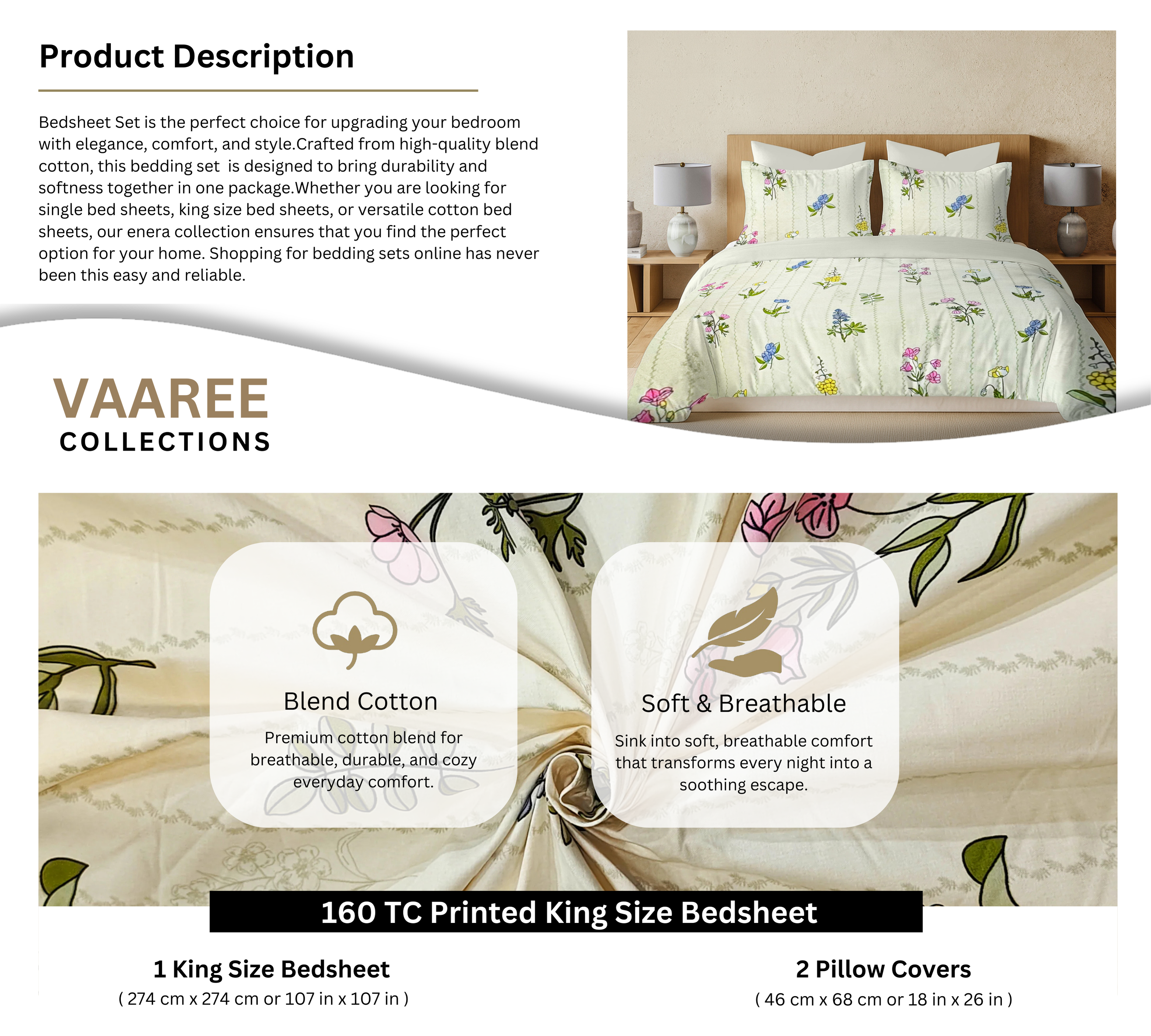 Enera Vaaree Printed King Bedsheet with 2 Pillow Covers Cotton - BUY 1 GET 1 - enera