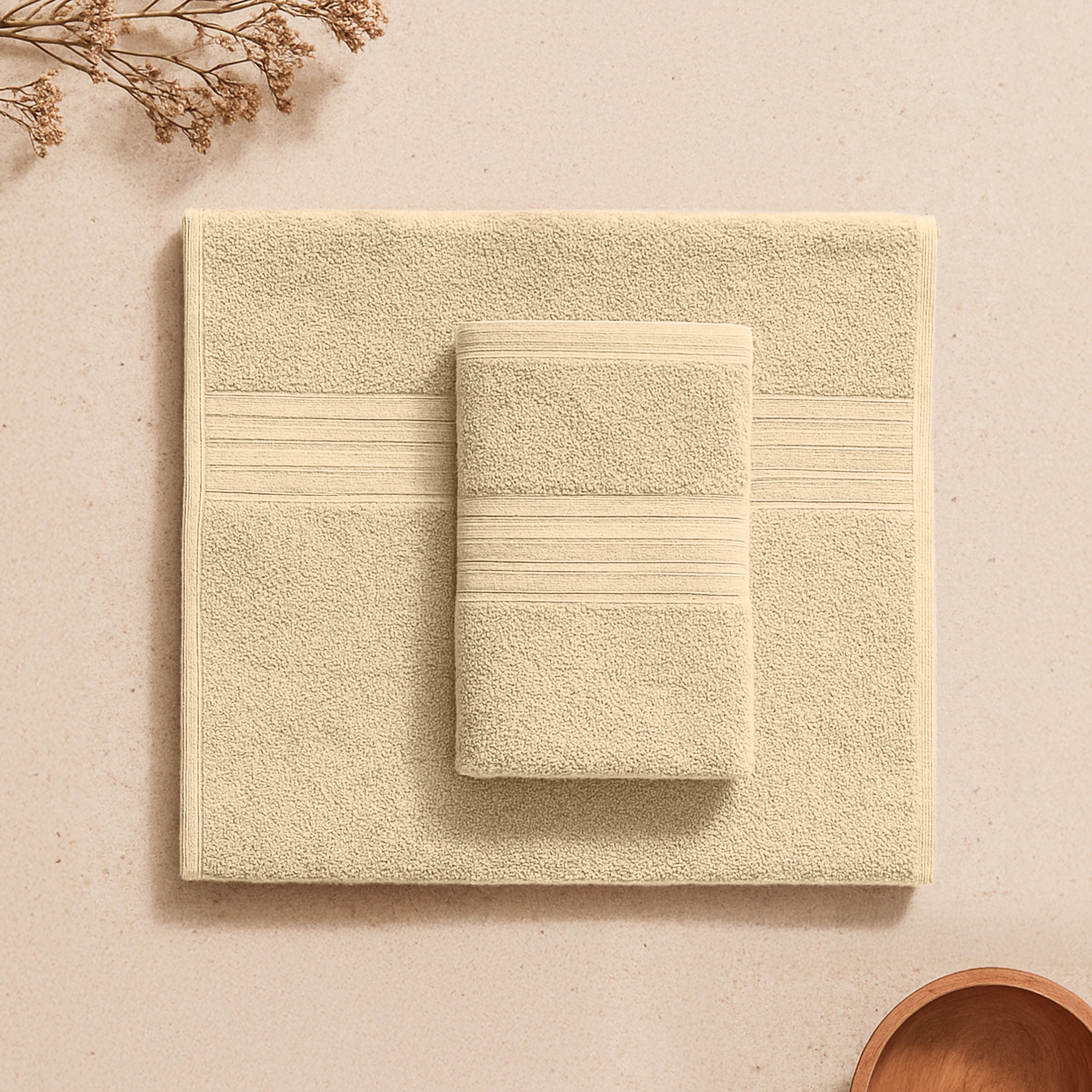The Enera Zenva Collection Latte Beige Color 2(Hand Towel) Set Material Cotton with Bamboo 40x60 cm is the epitome of understated elegance. Crafted with premium fabric, this hand towel blends softness with durability, ensuring a luxurious touch every time. Designed for versatility, this towel is highly absorbent, making it ideal for daily use. Whether placed in a powder room for guests or used as a quick-drying napkin, its plush texture and refined stitching elevate the experience.