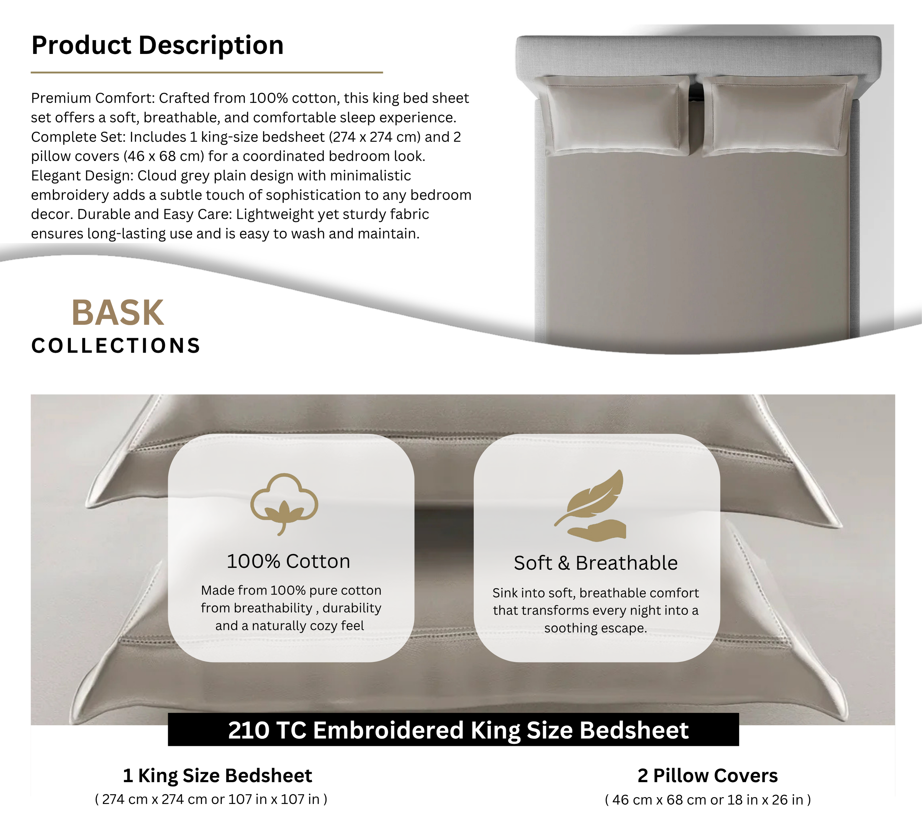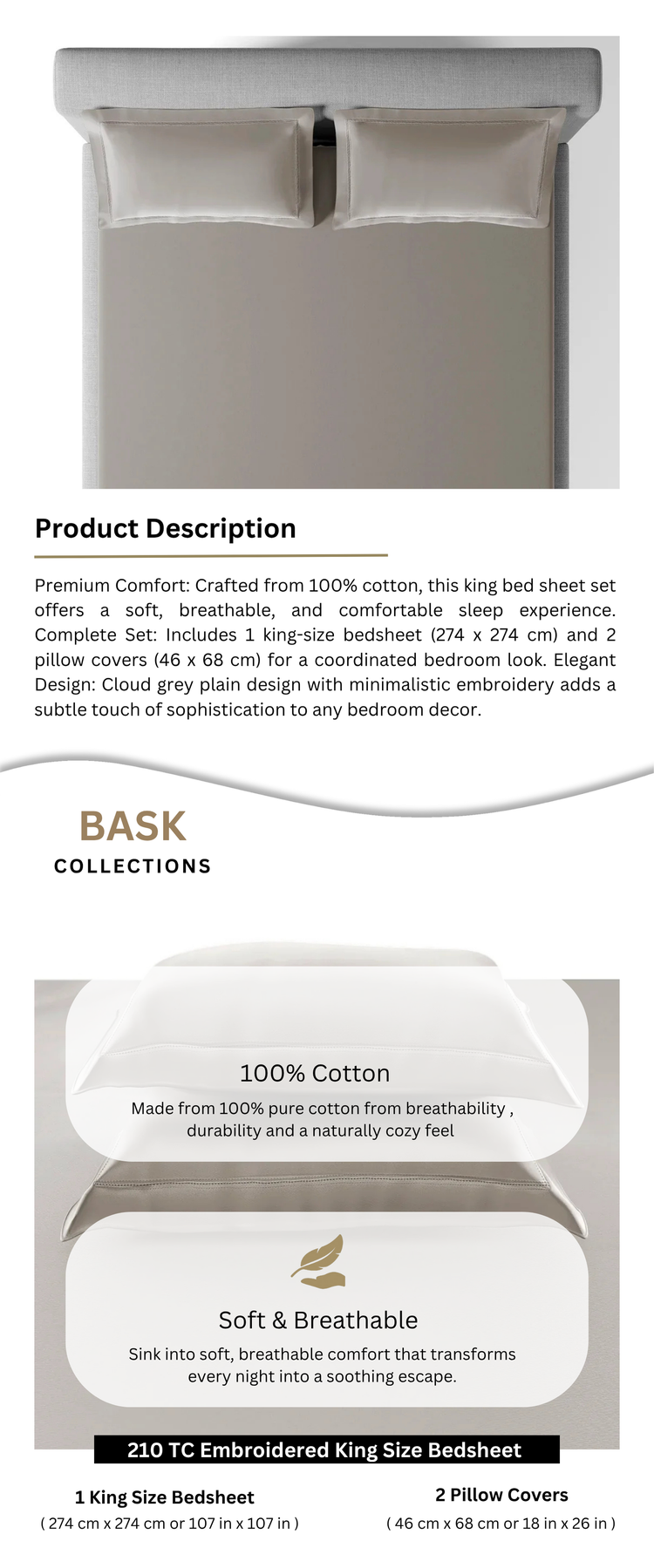 Elegant Design: Cloud grey plain design with minimalistic embroidery adds a subtle touch of sophistication to any bedroom decor.