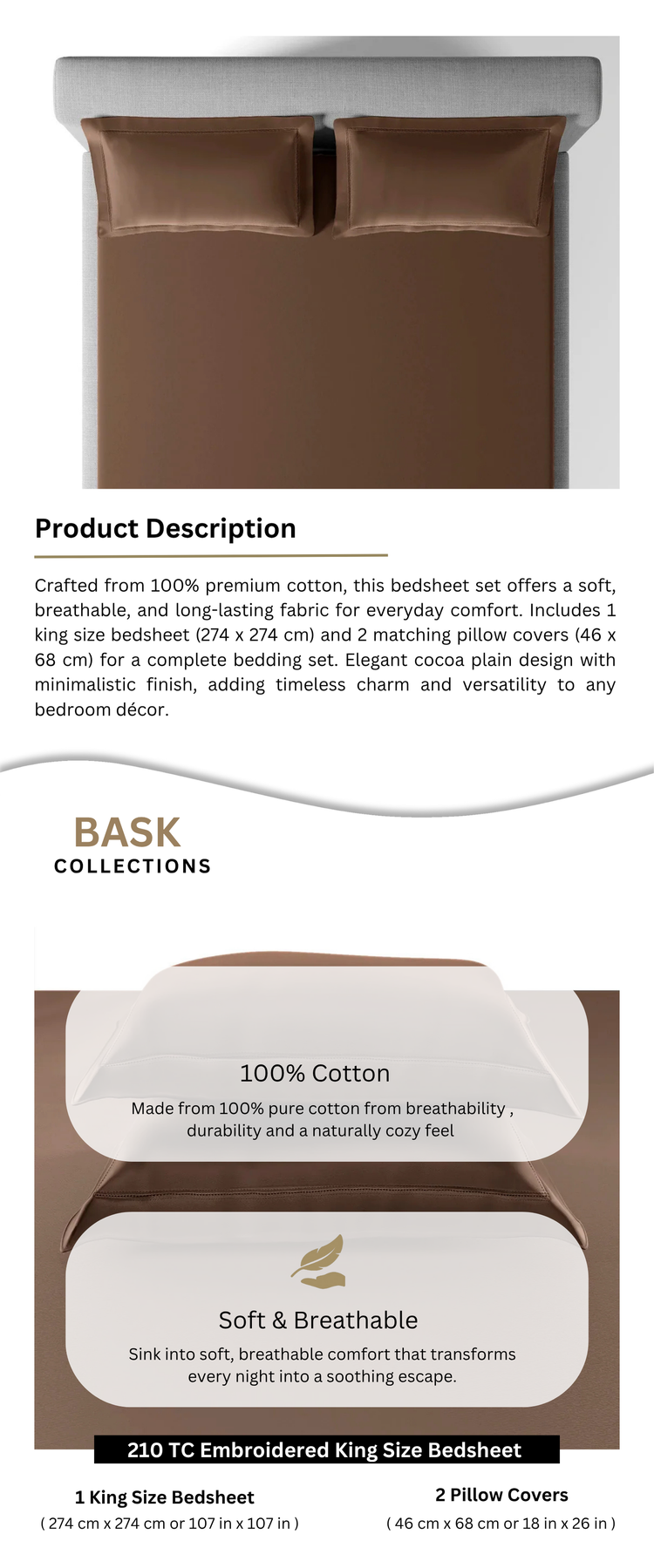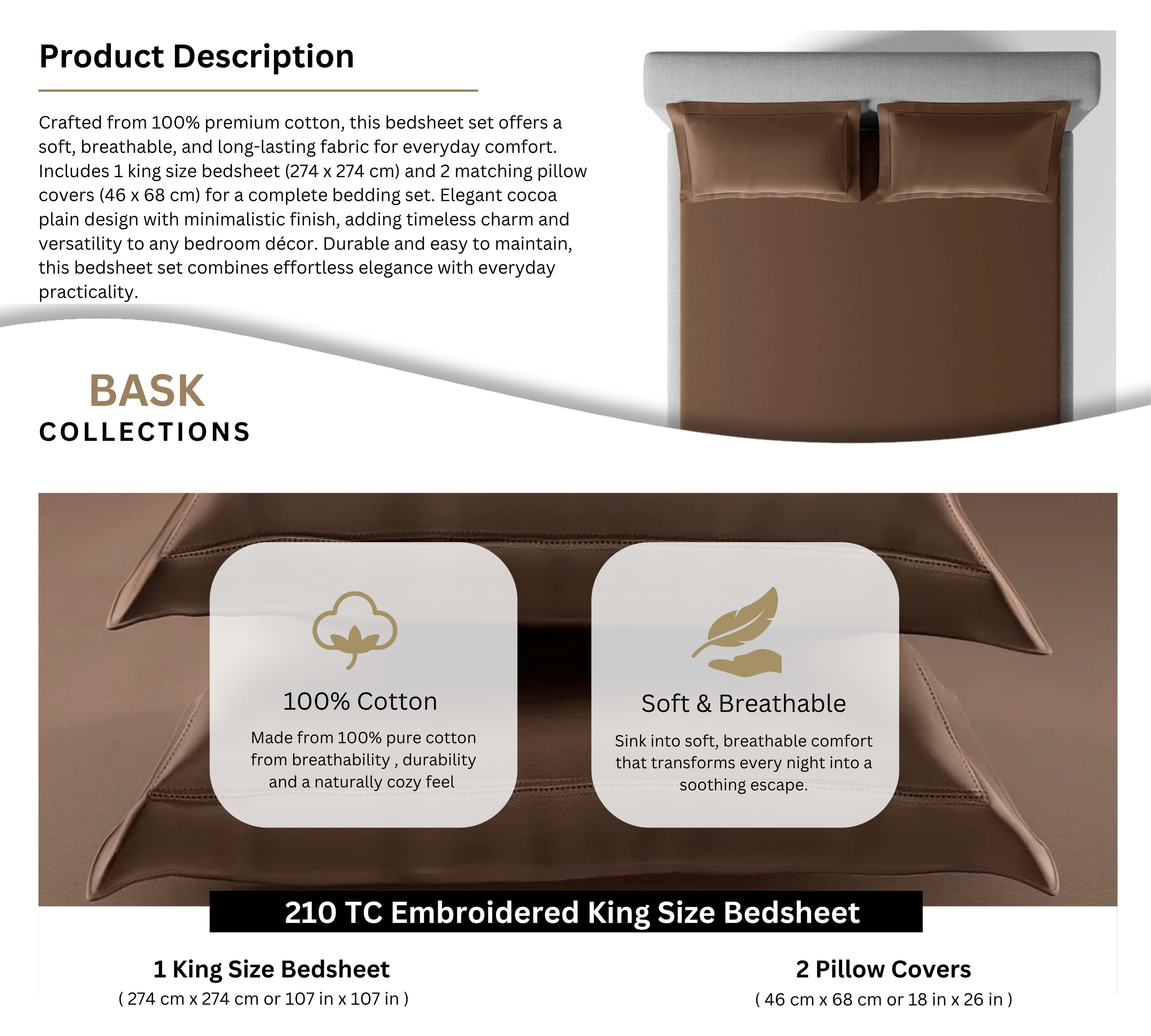 • Elegant cocoa plain design with minimalistic finish, adding timeless charm and versatility to any bedroom décor.