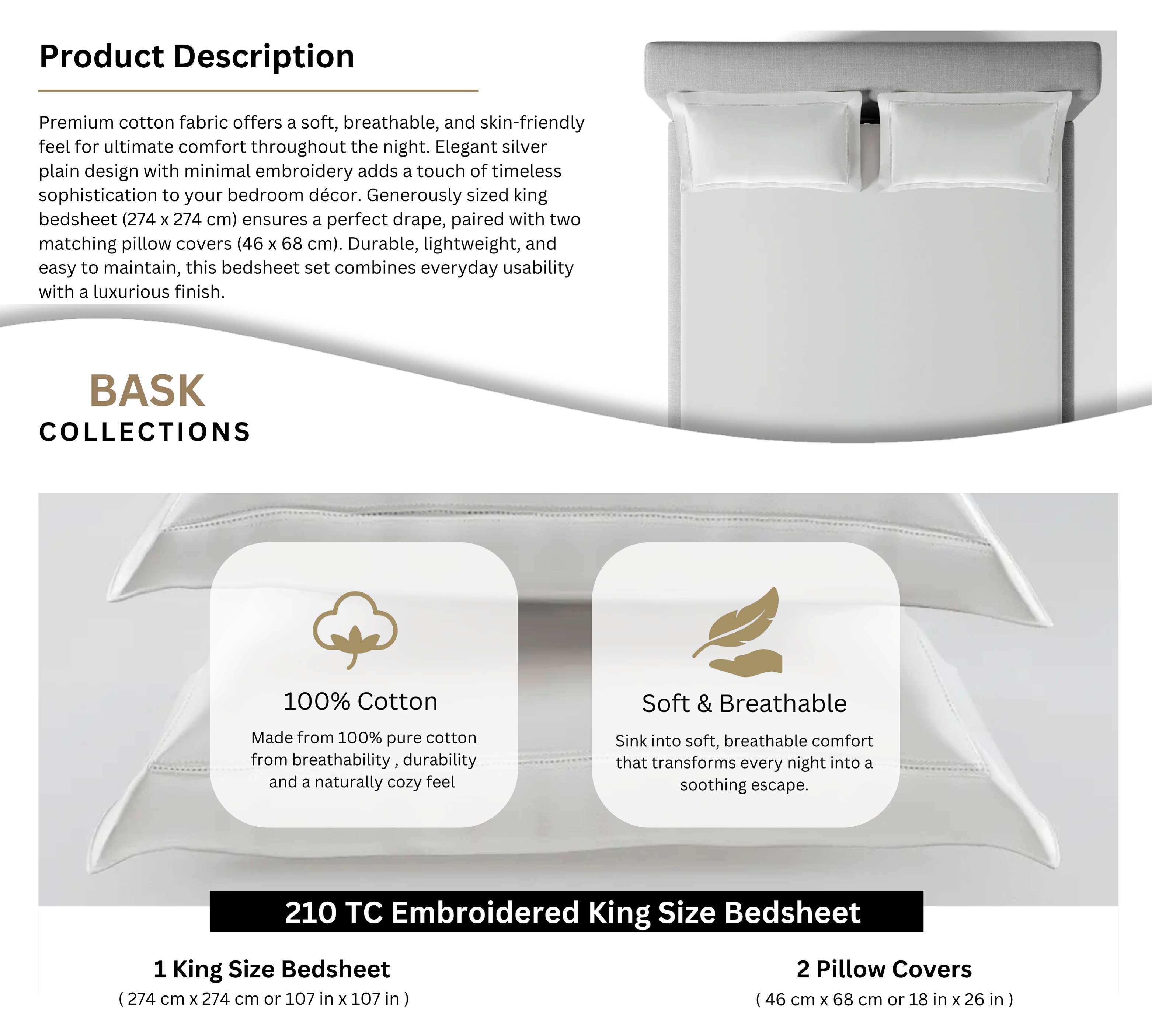 Elegant silver plain design with minimal embroidery adds a touch of timeless sophistication to your bedroom décor.