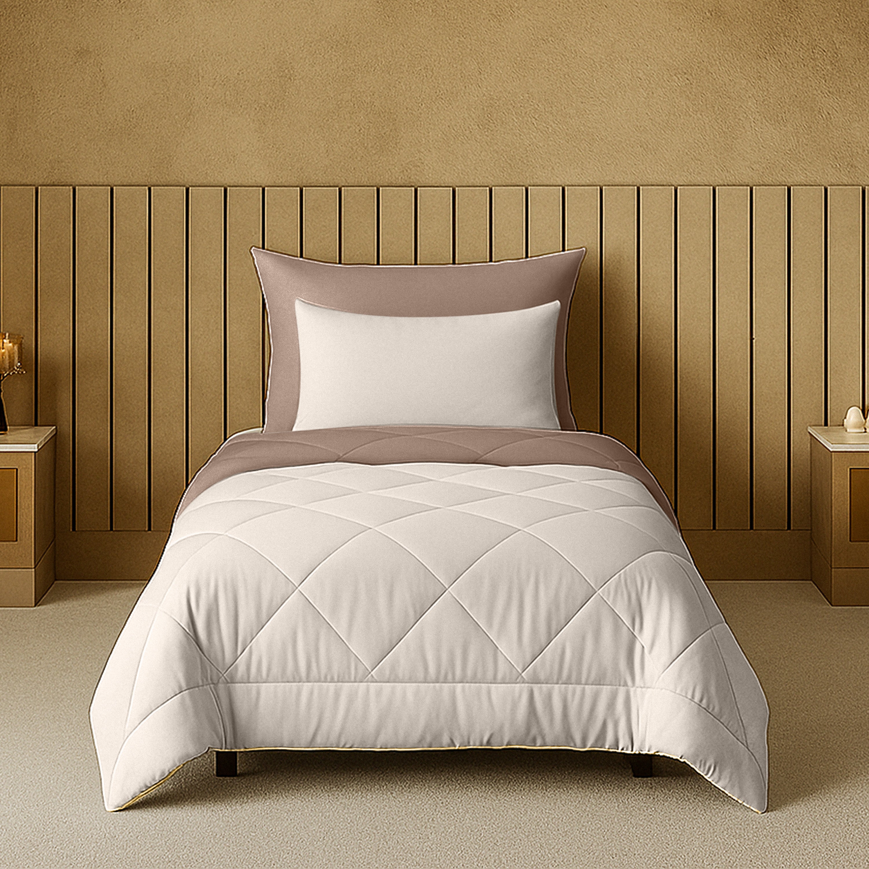 Cherish Quilted Cocoa Sand Reversible Single Bed Comforter for All Season