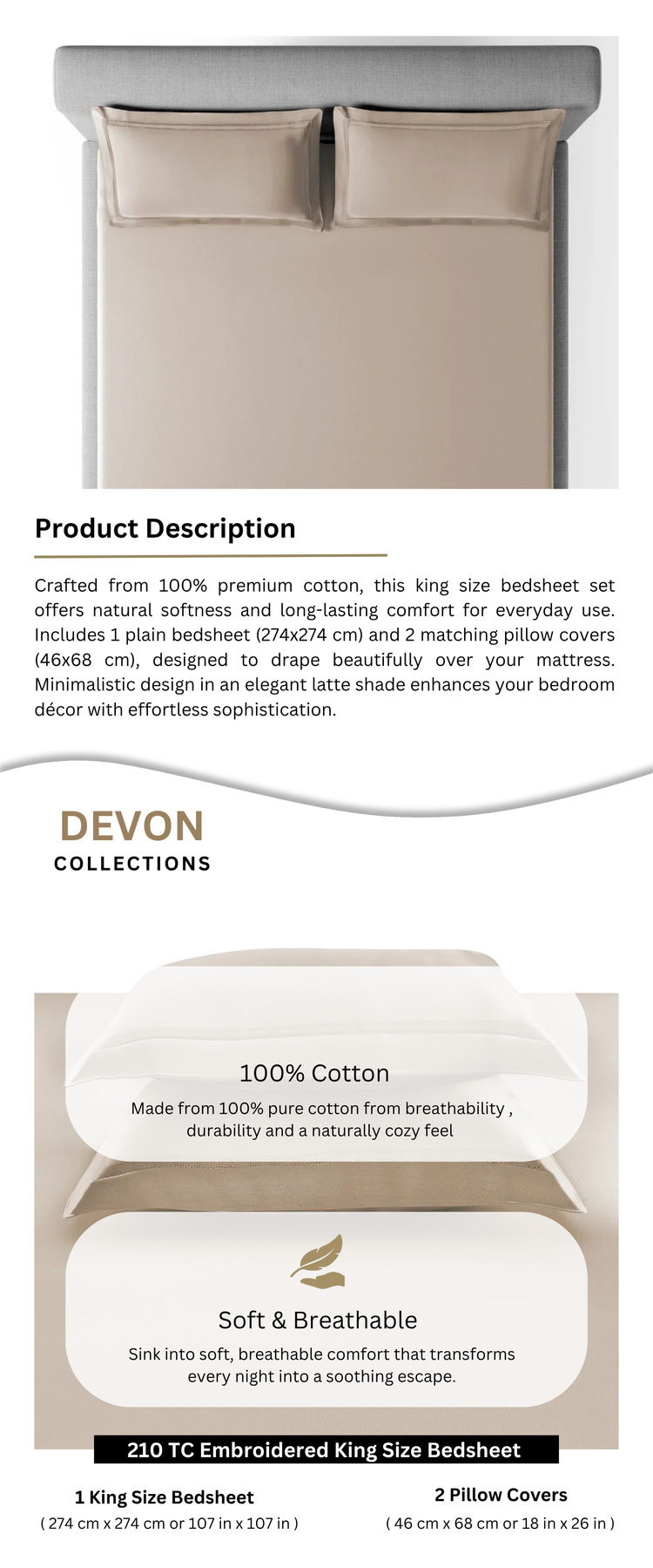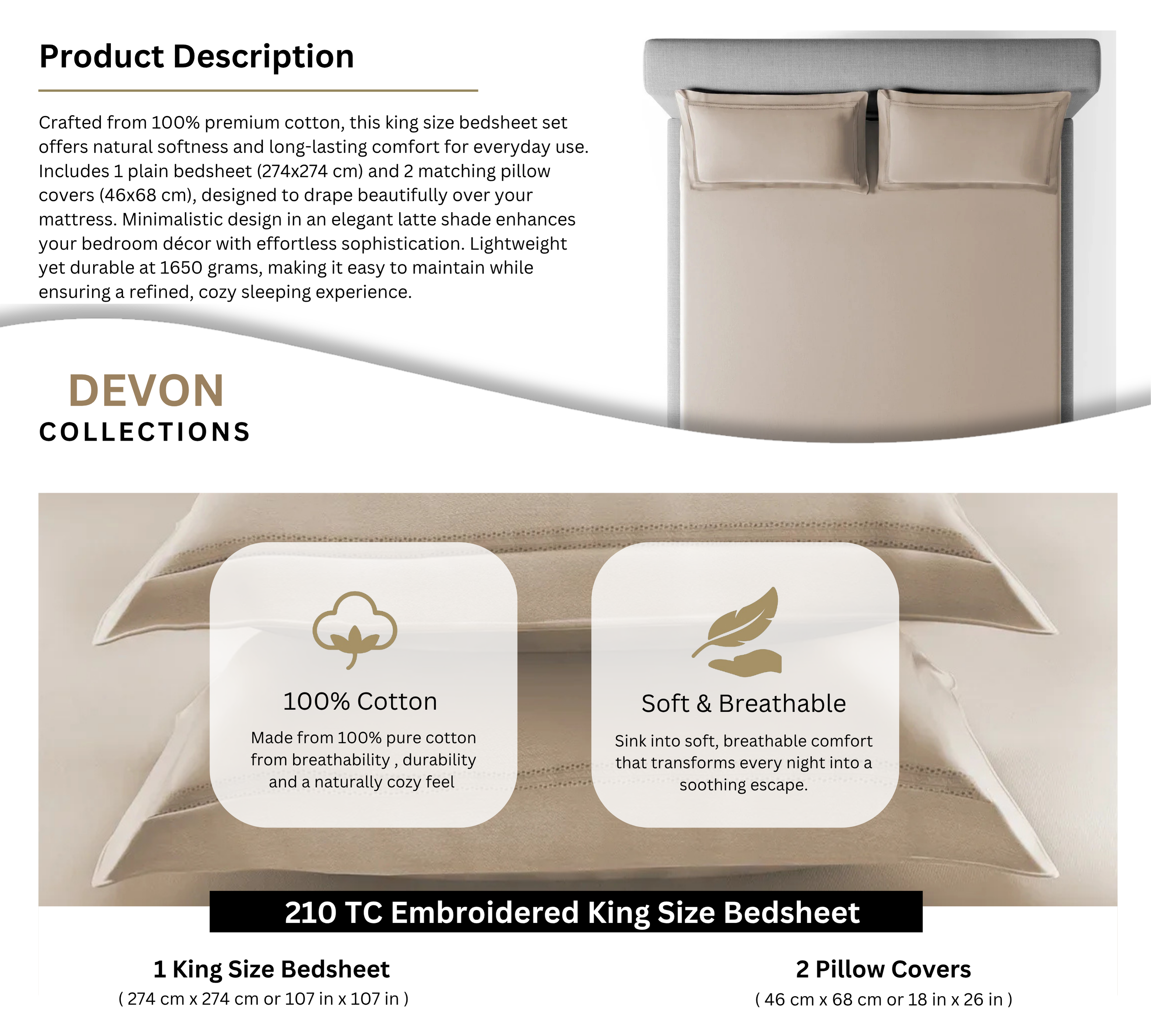 Includes 1 plain bedsheet (274x274 cm) and 2 matching pillow covers (46x68 cm), designed to drape beautifully over your mattress.