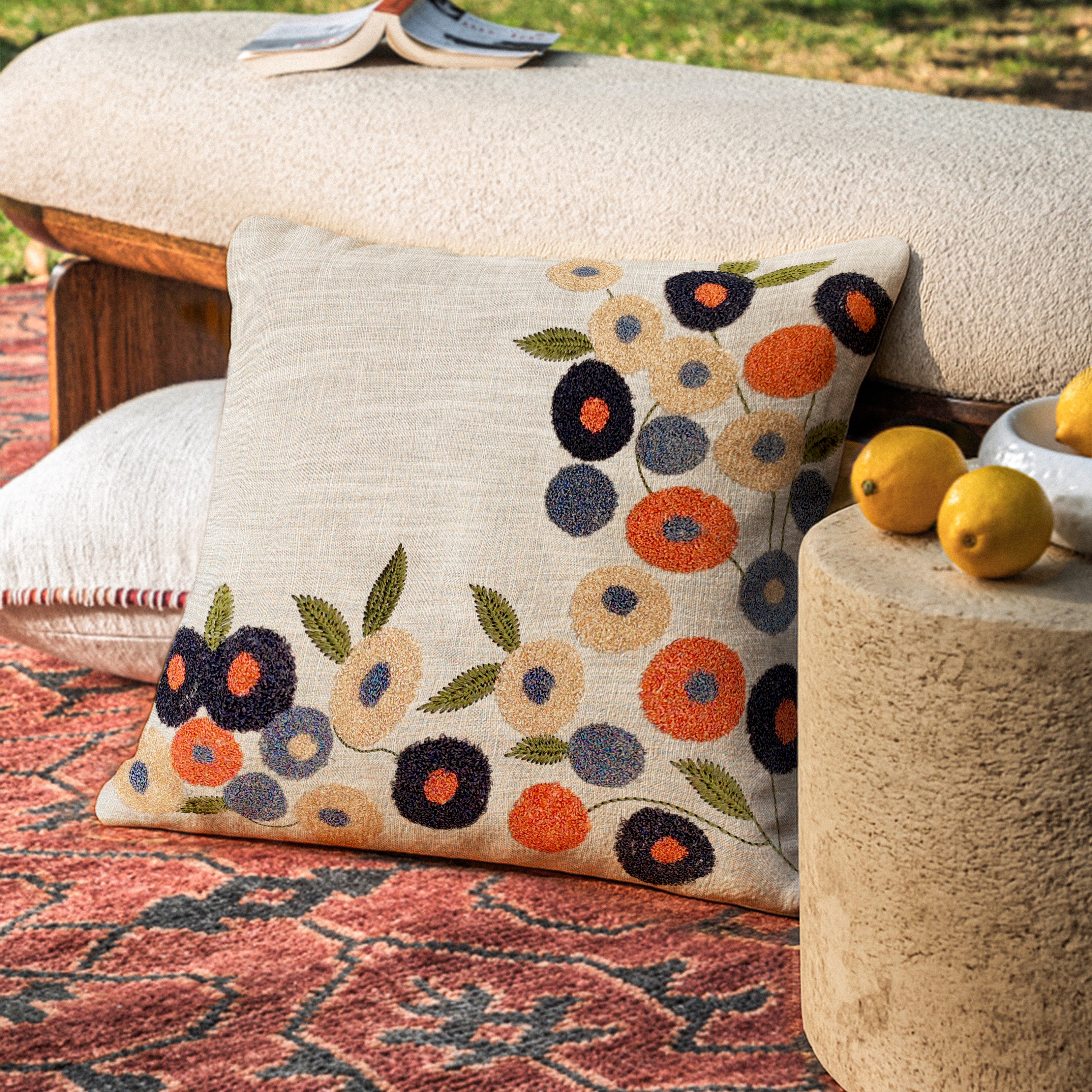 Grey | Thred Flower Design | 100% Cotton | 16x16 Inch | Machine Wash