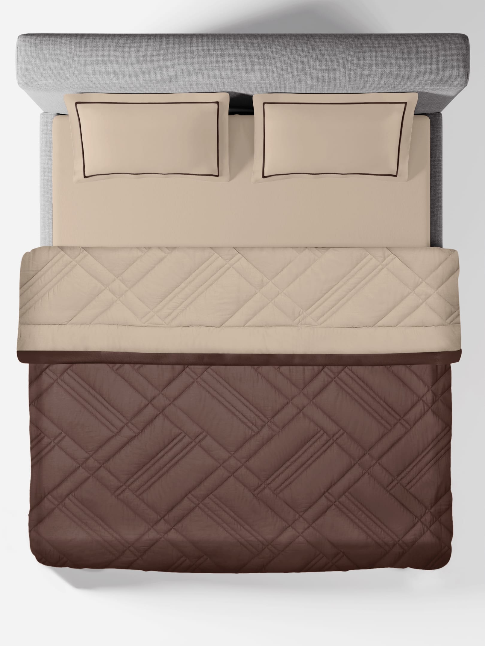 Wrap yourself in comfort with our reversible comforter sets, where modern and classic patterns meet refined elegance. It includes a matching bedsheet and pillow covers for a coordinated look. Crafted from premium cotton with a plush microfiber filling, this lightweight yet durable set offers effortless style and comfort year-round.