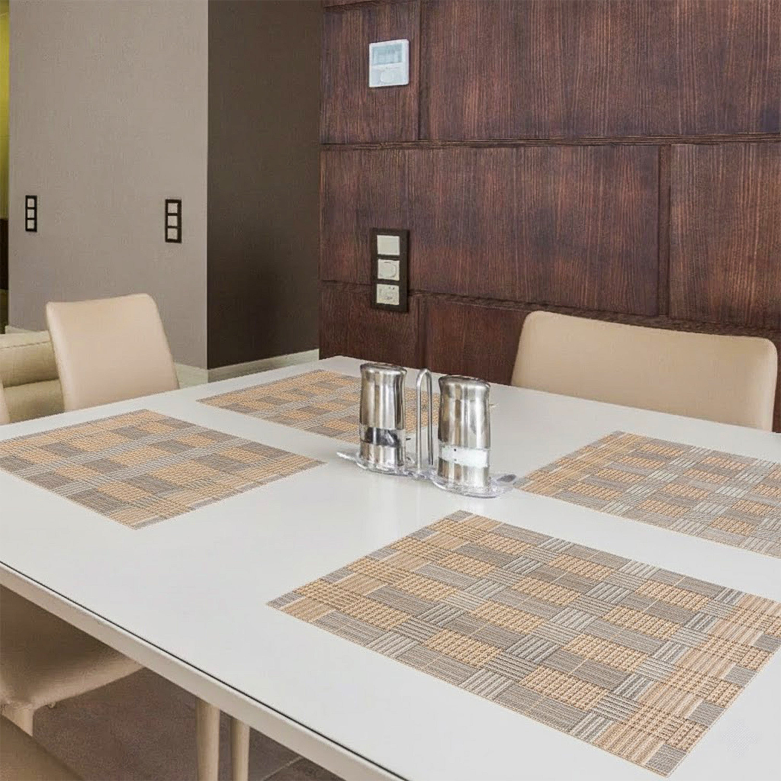 Add a touch of elegance to your dining space with the Woven Check Table Mat in Cream. Designed with a subtle check pattern, these mats bring a modern and sophisticated look to any table setting. Crafted from high-quality PVC, they are durable, heat-resistant, and easy to clean, making them perfect for everyday use or special occasions. The rectangular shape and standard size of 30 cm x 45 cm provide ample coverage for plates, glasses, and cutlery while protecting your table surface from stains, scratches, and spills. Their lightweight design ensures easy handling and storage, while the neutral cream color complements any décor style, from minimalistic to classic. Whether you’re hosting a dinner party or enjoying a casual family meal, this set of six table mats adds both functionality and charm to your dining experience, helping you maintain a neat and inviting table every time.
